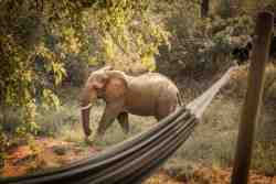 The accommodation at Garonga Safari Camp comprises of six en-suite luxury tents ideally positioned in this exquisite safari landscape. Each of the six en-suite luxury tents is sculpted out of rough-plastered walls and overarching canvas tents. The tents overlook a dry riverbed, and have a wooden deck complete with hammock that commands spectacular views. The rooms are light, airy and spacious with large, draped beds and indoor/outdoor showers.