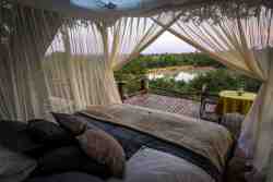 The camp reflects the surroundings of the bush's textured earthy colours and clean lines have been incorporated with fine linen to ensure pure comfort. This is truly a "Safari for the Soul".