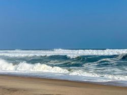 Our spacious upstairs retreat offers a freestanding bathtub and shower and sweeping views of the dunes. With a king-size bed, soft gold tones, and curated details, it’s made for moments of rest, reflection, and indulgence.