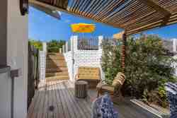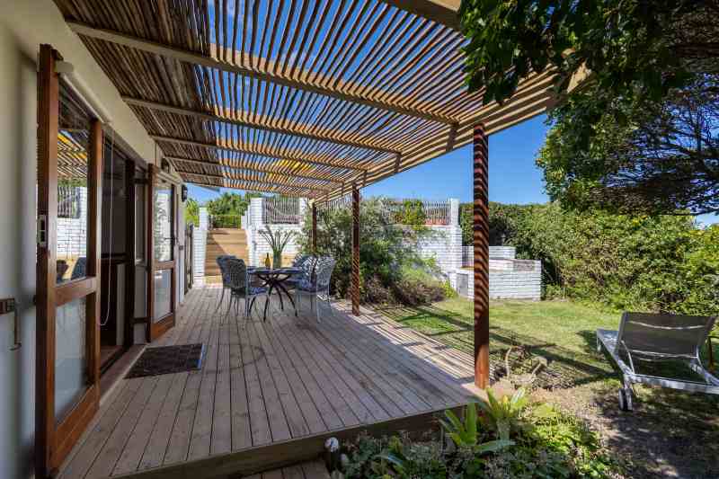 This charming beach cottage is situated in a beautiful estate in Keurbooms. Surrounded by natural beauty and with direct access to the beach, it is a prime location for sea lovers and nature enthusiasts. The comfortable, light and bright living areas are open plan and lead out to a covered deck area which is ideal for alfresco dining. The lounge has a cosy fireplace for the cooler evenings and there is a lovely bay window which provides a welcoming space to retreat with a book. The main bedroom is tastefully furnished and enjoys views of the well established garden. The private garden features a built-in barbeque which is perfect for outdoor cooking and entertaining and there is an upper deck area with beautiful sea views that stretch across to Robberg Peninsula. Relax on a lounger during the summer days or enjoy afternoon sundowners with the sound of the ocean in the background. The cottage is well equipped and has an inverter and there is a communal pool within the estate. Please note there is a refundable breakage deposit of R4000. There is a sleeper couch available in the second bedroom which is suitable for small children under the age of 5 years and infants. Please enquire.