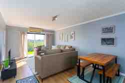 Enjoy open-plan living with a fully equipped kitchen, cozy lounge area, and sliding doors that lead out to your private garden, complete with outdoor furniture – perfect for morning coffee or evening sundowners.