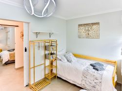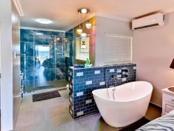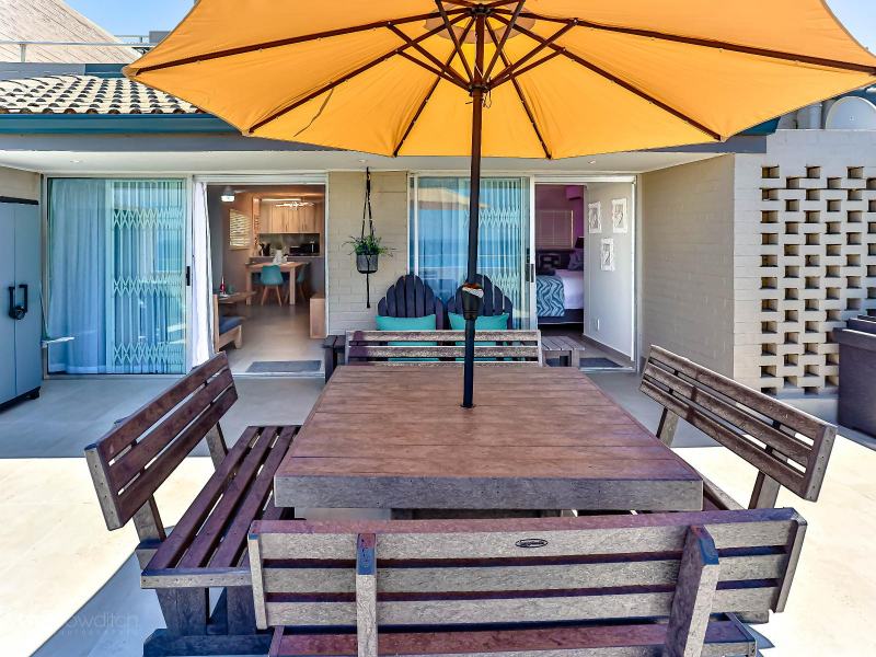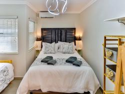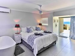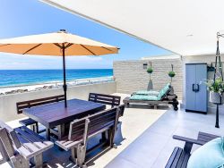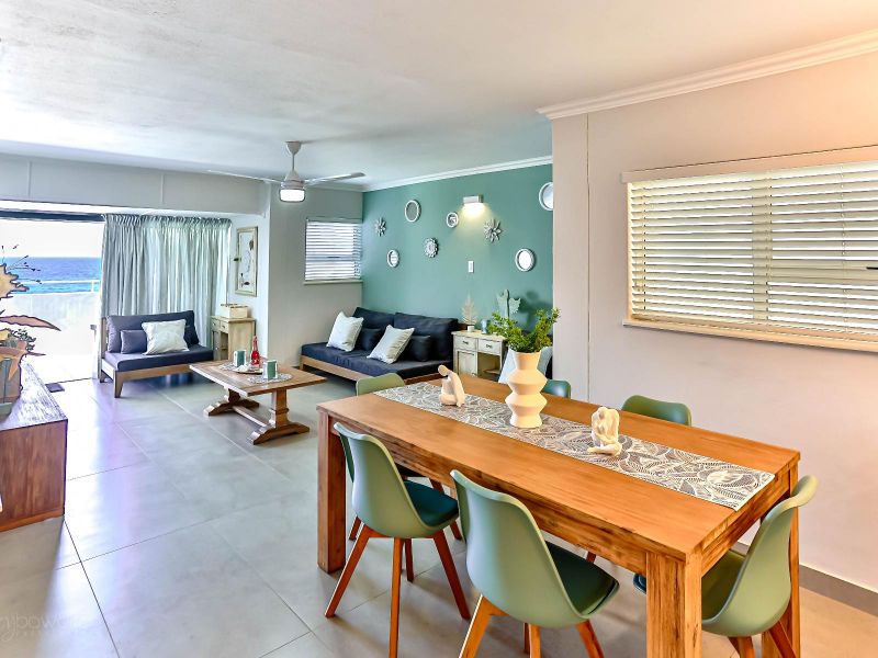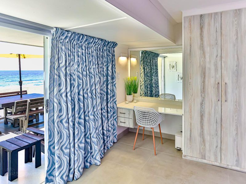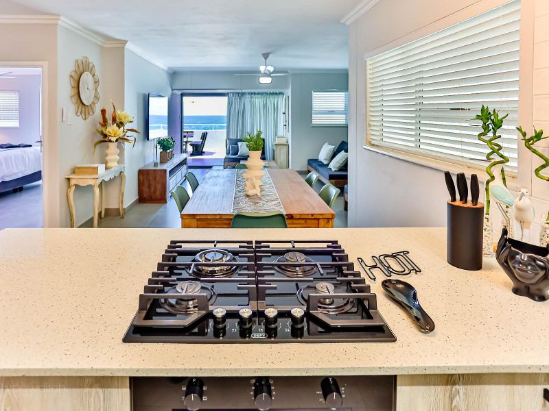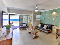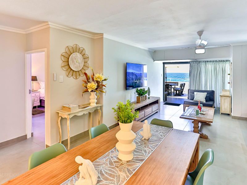 Wake up each morning to sweeping ocean views and the soothing sound of waves drifting onto the shore. Designed for effortless comfort and connection, this beachfront Retreat offers a serene space ideal for families, friends, or couples seeking relaxation by the sea. Designed with relaxation and connection in mind, the open-plan living area and main bedroom flow seamlessly onto a spacious balcony patio, perfect for morning coffee, sunset cocktails, a traditional South African braai, or simply enjoying the coastal breeze. Situated directly on the beachfront, this apartment offers spectacular sea and beach views from one of Ballito's most sought-after locations. Set within a secure complex along the well-known Ballito Promenade, only a security gate separates guests from the soft sand and the inviting shoreline. You'll have the convenience of secure parking throughout your stay, including a private lock-up garage, a reserved open parking bay and a trailer bay for added ease. The open-plan kitchen is equipped with everything needed for carefree self-catering, including a fridge/freezer, microwave, stove, toaster, kettle, full crockery and cutlery, and a dishwasher. Two Smart TVs, one in the lounge and one in the main bedroom, ensure entertainment and streaming convenience throughout the stay. The spacious patio, complete with a built-in braai, offers an ideal setting for laid-back meals and relaxed gatherings with breathtaking views as your backdrop. Guests also have access to a communal swimming pool within the complex, perfect for cooling off after sun-filled days on the beach. This stylish apartment features three air-conditioned bedrooms and accommodates up to seven guests. The main bedroom includes a King XL-size bed and a private en-suite bathroom with a free-standing bathtub and double shower for added luxury. The second bedroom has two single beds, while the third features a Queen-size bed and a single day bed. A second full bathroom with both a bath and a shower adds convenience, especially for families or groups. Bed linen and bath towels are supplied, and a cleaning and laundry service is available on request. Whether for a spontaneous escape or a well-deserved holiday, this beachfront haven offers the perfect blend of comfort, scenery and coastal charm.