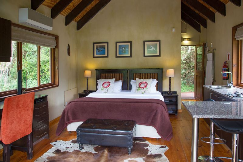 Let your soul revitalise to the peaceful sounds of the African bush in the quiet privacy of one of these luxury chalets, each with its own private forest deck and magical view of the wetland and forest. All chalets are exquisitely furnished comprising of full bathroom (large oval bath & separate shower) with heated towel rail, Infra Red heaters, lounge with tea/coffee amenities as well as DSTV Select